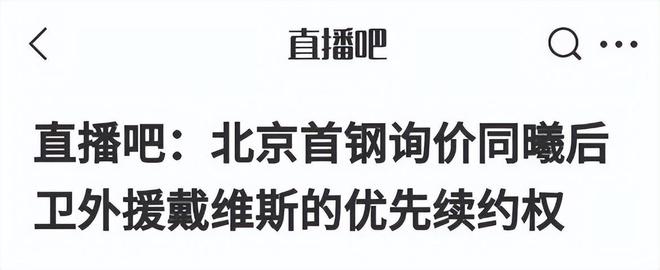 北京男篮本赛季的国产阵容非常豪华,但外援的表现差点意思。在CBA联赛的这个窗口期里,北京男篮对外援进行了调整,签下了前NBA悍将麦基,目前他已经抵达了球队。在小外援方面,北京男篮有意换掉表现不佳的贝利,一直在寻找更加合适的小外援人选。目前这件事有了确切的消息,据直播吧透露,北京男篮已经对同曦男篮进行了询价,想要购买外援肯德里克-戴维斯的优先续约权。